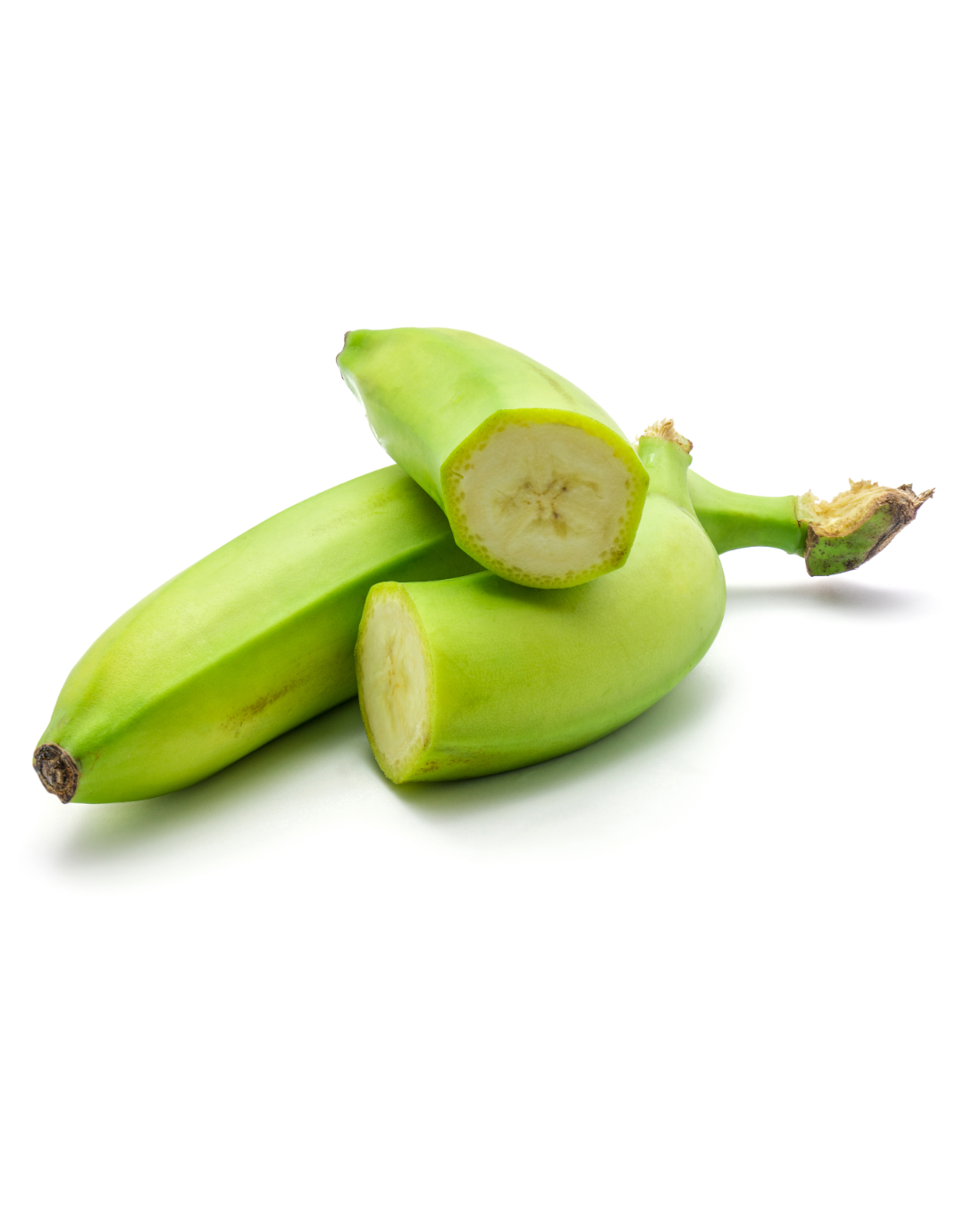 El plátano macho verde es firme y con un sabor más neutro y menos dulce, ideal para preparar platos salados y acompañamientos tradicionales. Perfecto para freír, cocer o hacer chips crujientes.